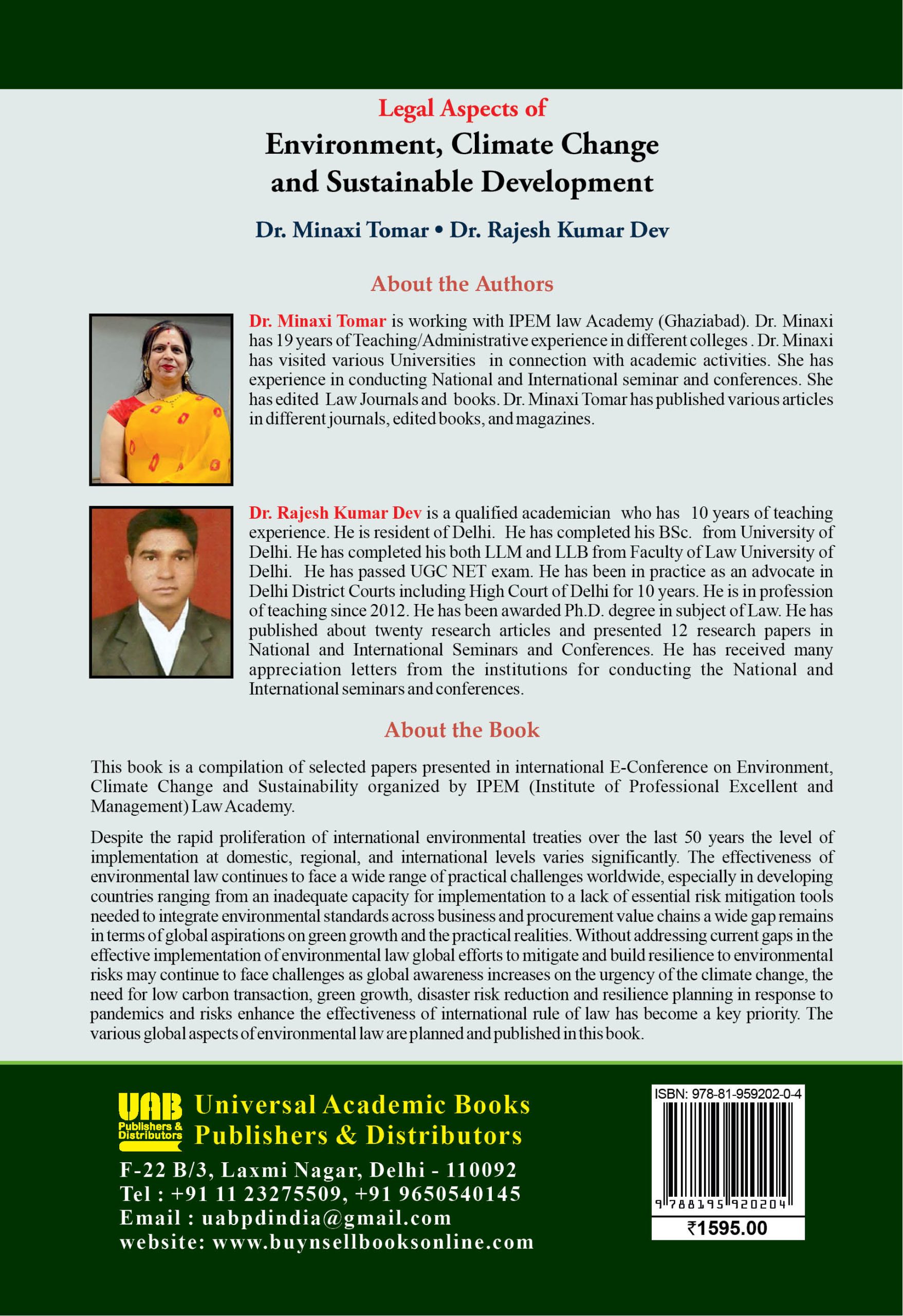 As global awareness increases about the urgency of climate change, the need for low-carbon transactions, green growth, disaster risk reduction, and resilience planning in response to pandemics and risks has become a key priority. The various global aspects of environmental law are planned and published in this book.